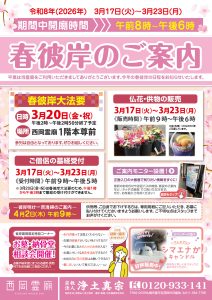 2026年3月17日(火)~3月23日(月) 、西岡霊廟(札幌市豊平区西岡509) 1F正面入口ホールにて「お墓・納骨堂の相談会」を開催いたします。